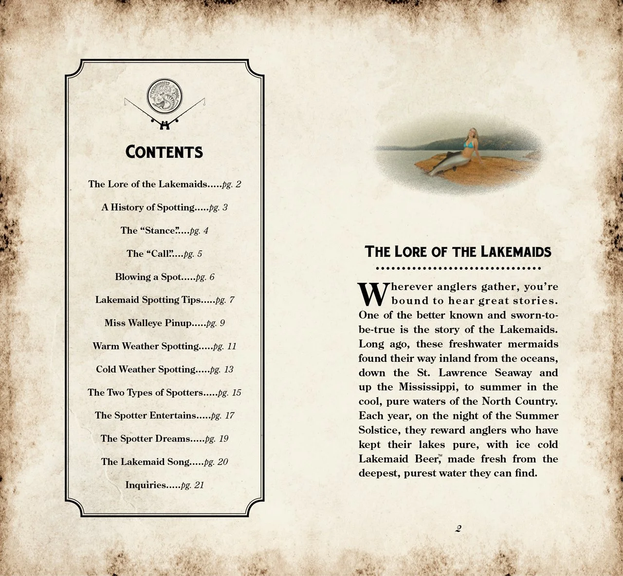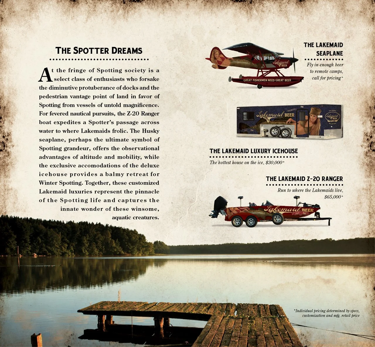 Lakemaid Beer introduced the world to freshwater mermaids, and I helped build the mythology around these new creatures with a mix of reverence and whimsy. In addition to the packaging and poster design, I created a range of non-traditional materials, including a bottlecap fishing game, a Spotter’s Guide catalog, and web films. My role across these projects included concepting, photoshoot direction, and design.