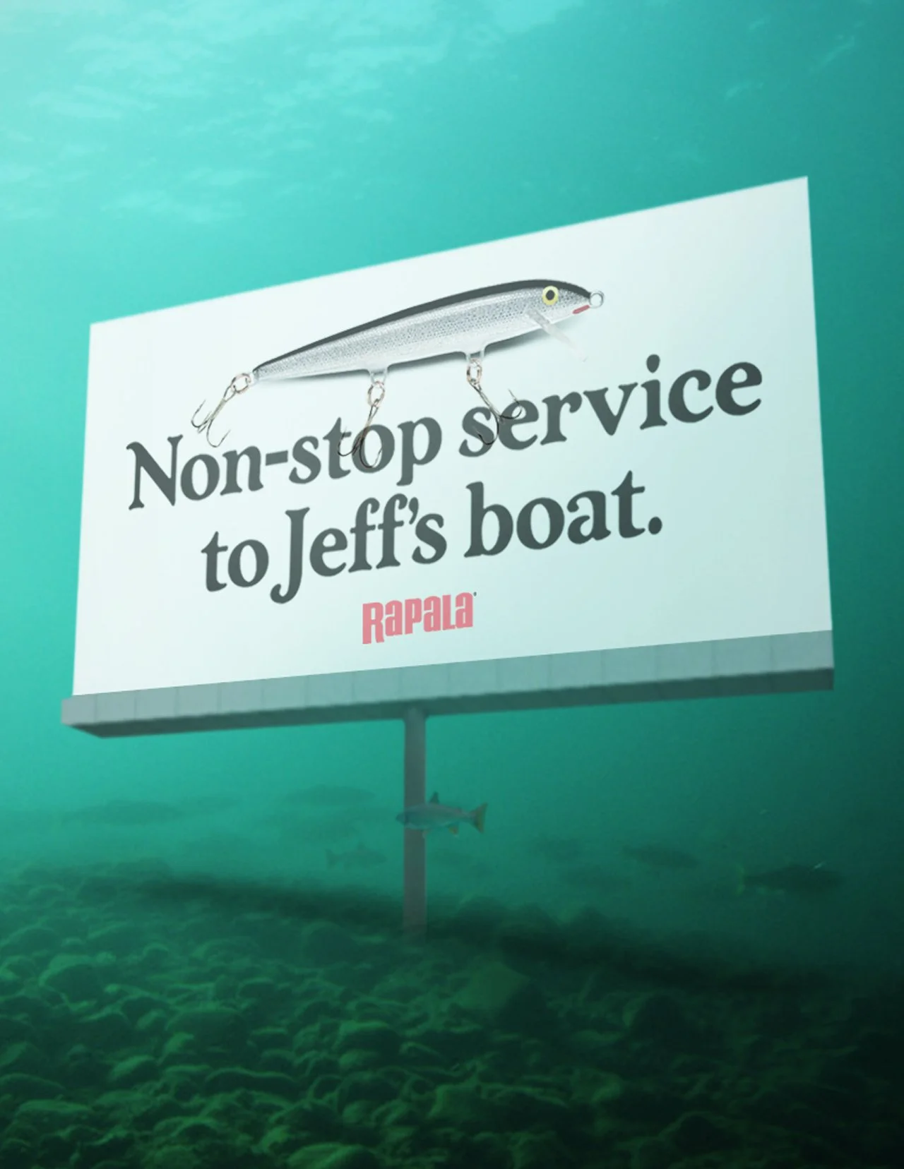 Rapala is known for elevating fishing advertising to something close to high art. I had the pleasure of contributing several print, OOH, and television campaigns to the brand’s canon — all reinforcing the idea that fish can’t say no to a Rapala lure. My role across these projects included concepting, photoshoot direction, and design.