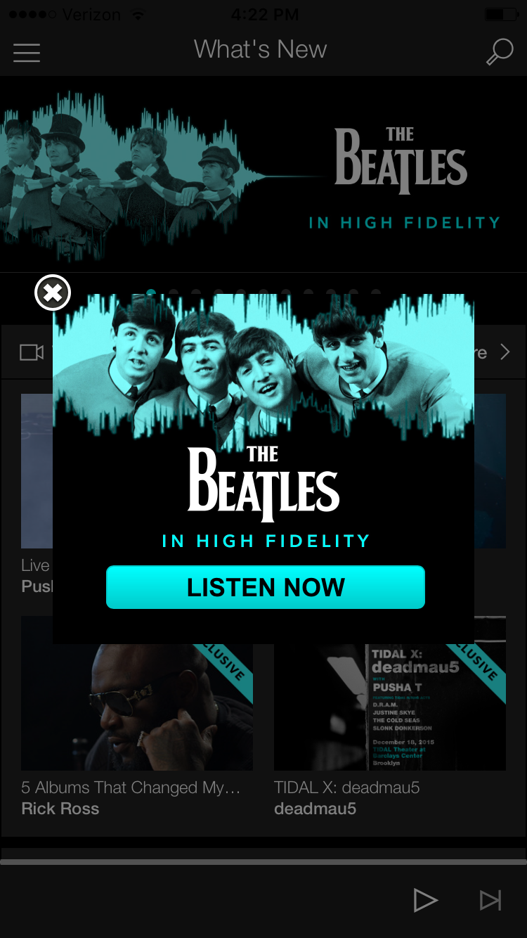 I partnered with TIDAL on a global campaign announcing that the entire Beatles catalog was now streaming in high-fidelity, exclusively on their platform. The strategy centered on an outdoor media blitz in major markets — from Los Angeles and London to a Christmas Eve takeover in Times Square. My role included pitching the concept and designing assets for OOH, social media, and the app.